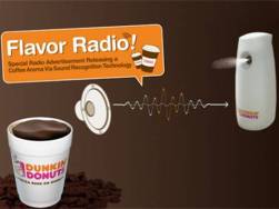 Được thiết kế như những bình xịt phòng tại nhà. Thiết bị “Flavor Radio” được lập trình để phát ra mùi cà phê Dunkin’ Donuts mỗi khi nhạc nền của thương hiệu này được phát trong hệ thống loa trên xe buýt.