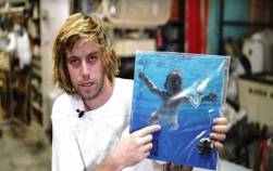 Spencer Elden bên cạnh Album Nevermind của Nirvana. (Ảnh: Rolling Stone).
