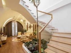Với thiết kế vườn cây giữa nhà, nơi thông tầng, từ không gian các phòng chức năng, mỗi thành viên trong gia đình đều có thể cảm nhận không gian xanh mướt.