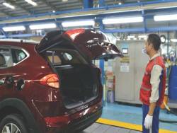Sản lượng sản xuất ôtô trong nước sụt giảm do tiêu thụ kém và thiếu hụt nguồn cung linh kiện nhập khẩu .Ảnh: HOÀI DƯƠNG