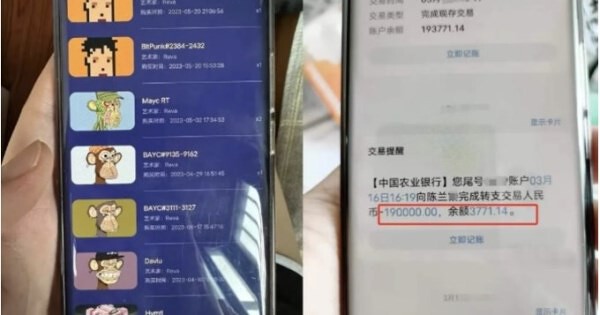 Một nạn nhân chuyển 190.000 nhân dân tệ (666 triệu đồng) để mua NFT. Ảnh: Lanjinger